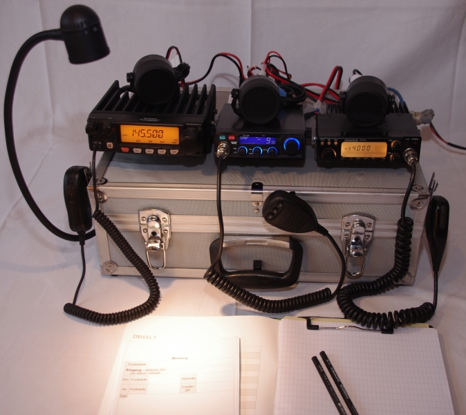Alle Koffer beinhalten neben den Funkgeräten die notwendigen Stromkabel zur Verbindung mit Batterien, Netzteilen oder eine KFZ-Zigarettenanzünder-Buchse. Zudem enthalten sind natürlich Handmikrofone, Antennenkabel und -Adapter, sowie ein Notfunk-Zubehör-Set.Wie schon gesagt: In dieser ersten Projektphase galt es, die Funkgeräte überhaupt für einen Notfunkeinsatz klar zu machen - mit dem Ziel, im Einsatzfall nur einen (oder mehrere) Koffer im Keller zu schnappen, dorthin zu fahren, wo es notwendig ist, Geräte aufbauen und losfunken zu können.