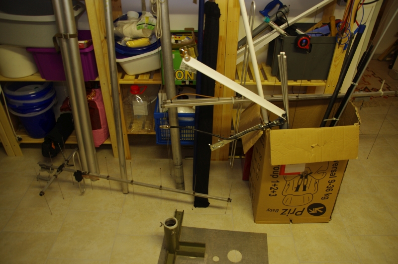 Die nächste Herausforderung waren die "anderen" Antennen - sprich jene, welche auf Stativen, Masten, Hausdächern oder irgendwelchen Rohren zum Einsatz kommen werden. Hier verschob ich die Bastelei auf den Sommer, denn große Antennen lassen sich bei einer Deckenhöhe von 2 Metern nun einmal nicht besonders gut aufbauen. Im Bereich Aktuelles Material stelle ich ein paar der Antennengeschichten vor.