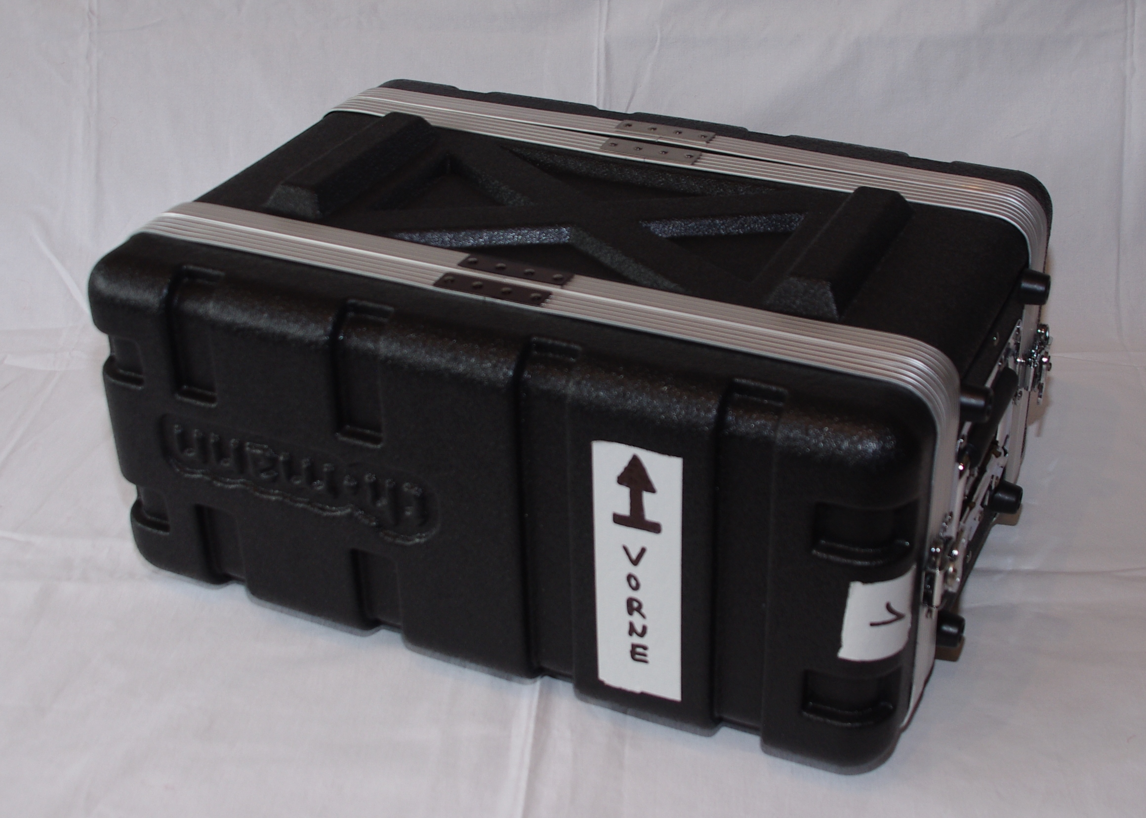 Und so kam es, das ich - einmal alle Koffer fertig und einsatzfähig - überlegte, wie ich das Koffer-Thema verbessern kann. Zudem hatte ich da noch drei Funkgeräte herumliegen, welche ich zuerst in einem äusserst windigen Kleinteilemagazin unterbrachte - was aber nicht als gelungenes Experiment endete. Ich machte mich folglich auf die Suche nach einer neuen Idee für meine Koffer, und wurde schnell im Musikbereich fündig, in welchem Geräte (Enstdufen, Vorverstärker, Equalizer, Mischpulte etc.) schon lange ausschliesslich in standardisierten 19-Zoll-Schränken und Koffern verbaut und transportiert werden.