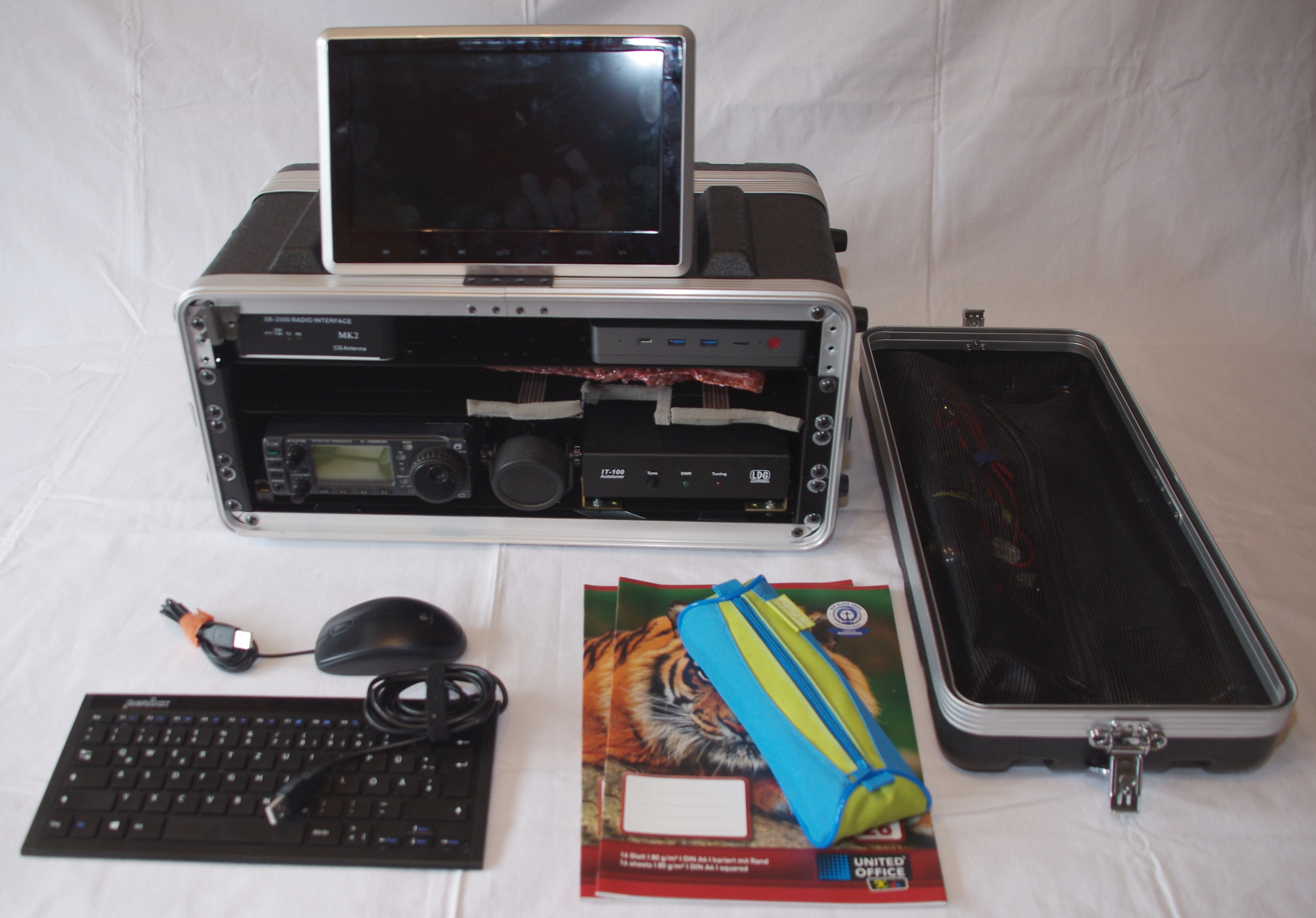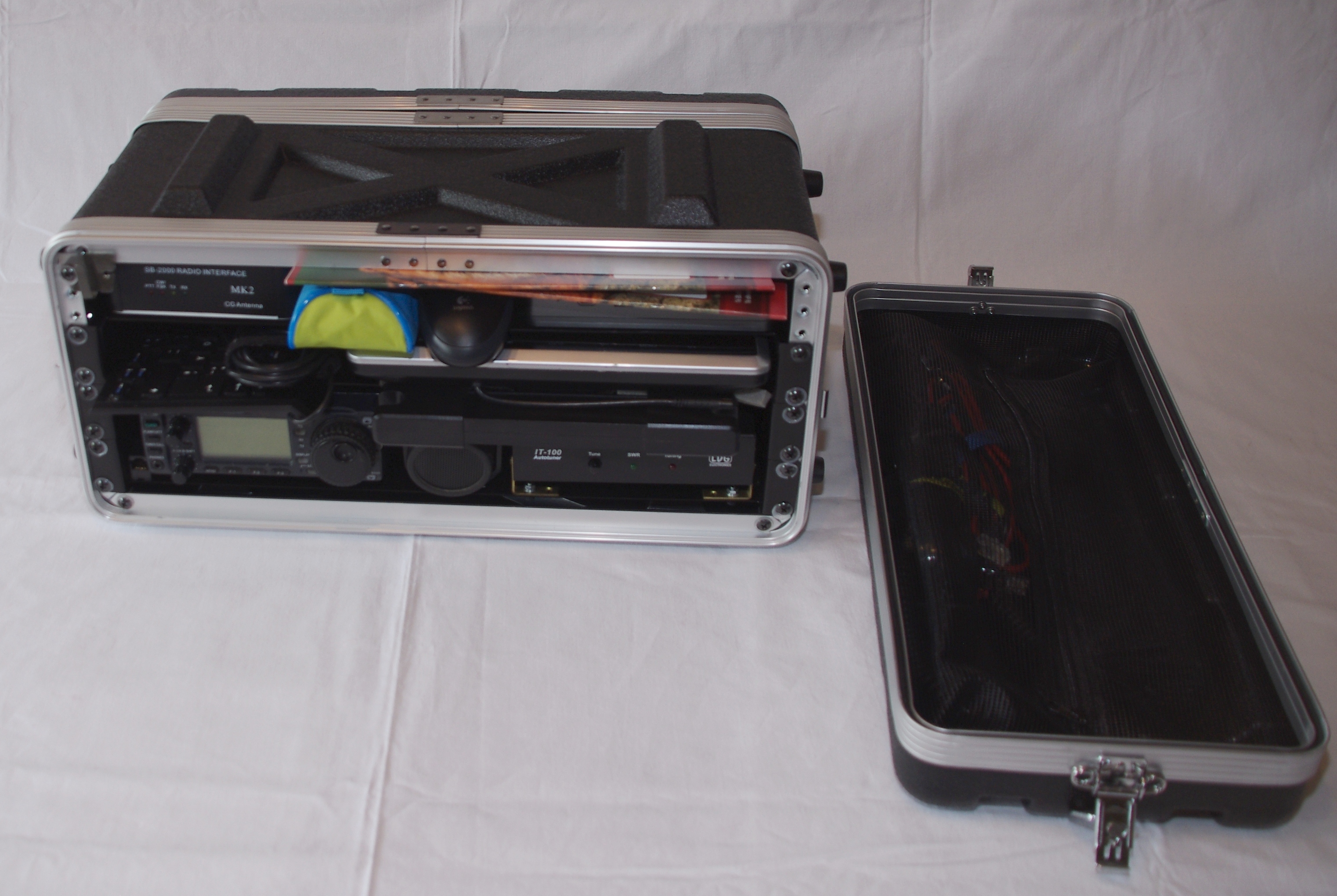 Diese Koffer haben nur ein Handicap: Alle "nicht-19-Zoll-Geräte" müssen auf Bodenträger eingebaut werden. Dies ist aber in meinen Augen kein Problem, erhöht es doch nur die Wartungsfreundlichkeit der Geräte - denn Diese ist eine unbedingte Anforderung für mich. Weiterhin bieten diese Koffer (welche ich in der Bauhöhe "4 HE" (4 Höheneinheiten) im Einsatz habe) eine Menge Platz und vor allem die Möglichkeit, die Geräte fest und einsatzbereit zu verbauen.Übrigens: Ich werde längst nicht alle Koffer auf 19-Zoll-Technik umstellen. Ich denke, das ich derzeit an einem Punkt angekommen bin, an welchem es nur noch darum geht, Geräte und Technik sinnvoll zu kombinieren und zum Einsatz bringen zu können. Ich werde die Kofferbeschreibungen nach und nach hier auf den aktuellsten Stand bringen.